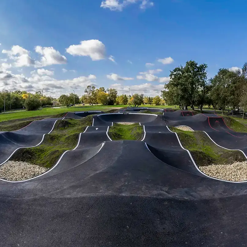 A „medence” a skateparkok rendkívű eleme, viszont hazánkban még nagyon kevés helyen található. Cégünk egyedi megoldásokkal képes ezeket az elemeket integrálni pumpapályákba.