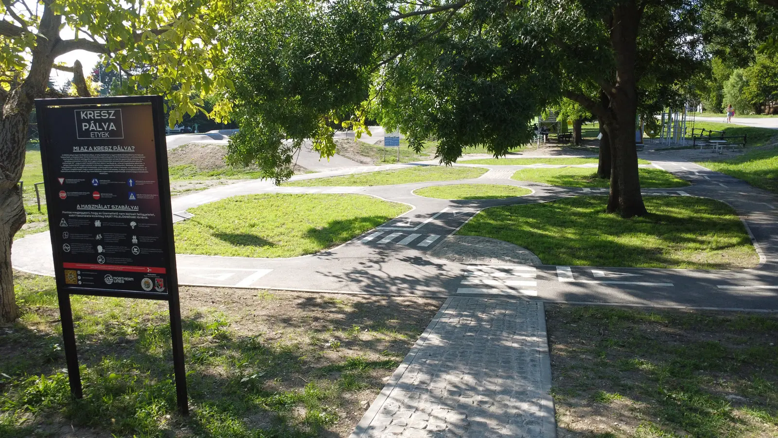 A KRESZ park közvetlenül a pumpapálya mellett helyezkedik el, így természetes előszobája lehet a későbbi, komolyabb bringás kalandoknak. A park kialakítása során az önkormányzat kérésére néhány játékos hullám, valamint egy szlalom szakasz is helyet kapott, amelyek nemcsak szórakoztatóak, de kiválóan fejlesztik az egyensúlyérzéket és a kerékpáros alaptechnikákat.