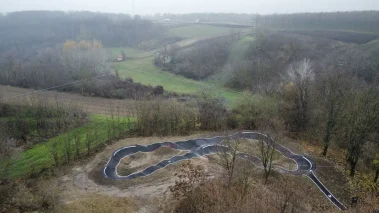 A Lajoskomáromi pumpapálya kialakítása külön odafigyelést igényelt, mivel a pálya nagy szintkülönbségekkel rendelkező területre épült. A tervezés során arra törekedtünk, hogy a vonalvezetés jól illeszkedjen a környezet természetes domborzatához és terepviszonyaihoz. A nyomvonalba két darab asztalos ugratót is beépítettünk, amelyek tovább színesítik a pálya élményét.