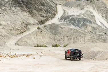 A helyszín kialakítása is különleges figyelmet igényelt, többek között három fő pályaszakaszt alakítottak ki munkagépekkel és kézi eszközökkel, amelyeken Oszkár trükkökkel, ugrásokkal és meredek ereszkedésekkel mutatta meg tudását. Az egyik legkiemelkedőbb mutatvány során a bánya legmagasabb pontjáról indult le egy erősen lejtős, 80 méteres szakaszon, amelyet kifejezetten a forgatás kedvéért készítettek elő. A trükkök között Oszi új és komplex mozdulatokat is bemutatott, például egy kormánypörgetést, amelyet a forgatás végén végzett el több drámai elem felvételével, köztük drónfelvételekkel is.