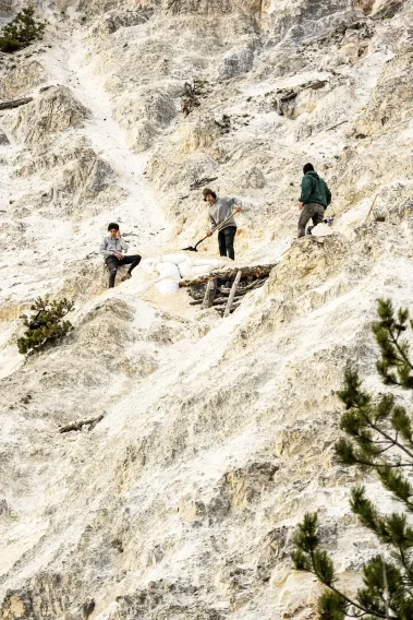 • Különleges elemek: 250 tonna dolomit mészkő feltöltése a lejtős szakaszon